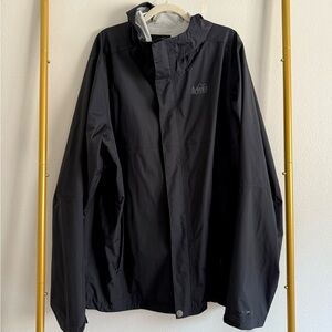 REI Co-op Black Rain Jacket Windbreaker Hooded Mens Sz XL Tall Outdoor