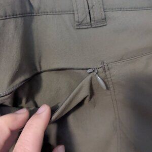 Great condition, shorts lined skirt, has additional drawstring inside , stretch, quick dry, button and zipper closure, has 2 zippered pockets in front and 2 zippered pockets in back.