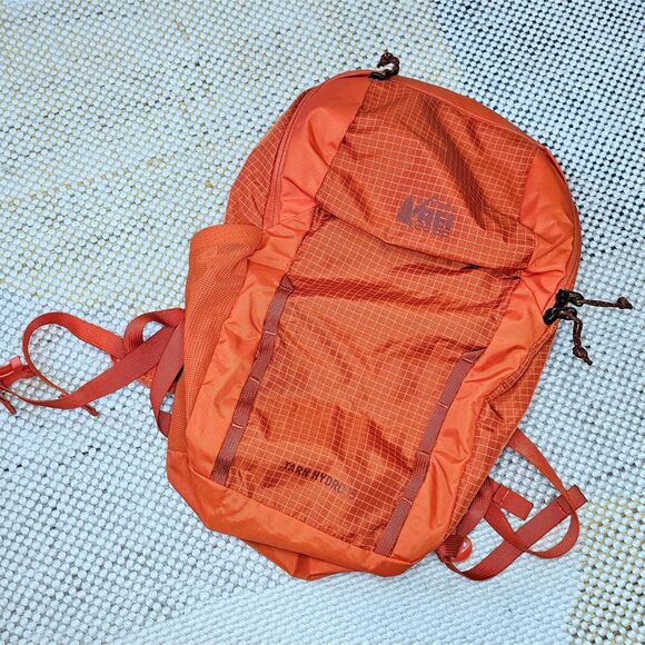 ~REI Co-op high-performance kids' hydration pack in excellent condition ~Vibrant orange with reflective safety details and built in safety whistle