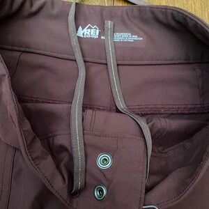 REI Co-op Screenline Technical Shorts. Women’s Size 4. Stretchy! Color is Cacao/Mauve. I would like to add that it is hard to capture in photos but the stretchy portion of the waist band is a deeper color than the nylon portion of the shorts, somewhat seen in last 2 photos. The nylon body of the shorts have a line/ribbed texture. 2 way stretch. Utility pockets in the front. Rear pockets with right rear pocket zipper closure. Double snap closure at waistband with zipper and internal drawstring. Good condition. Only signs of wear are on the snap buttons at waist, included photo. Waist: 28” Rise 9.5” Inseam 6” (all approximate) Great shorts to add to your wardrobe.