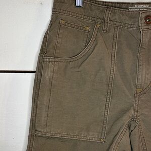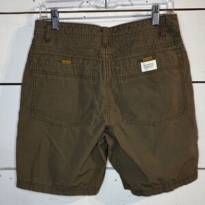 Great pre loved condition. No flaws. Hiking, outdoor cargo shorts. Button and zipper closure and functional pockets. Color is a mix of brown and dark olive green.