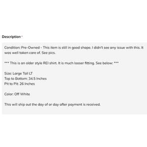 REI Fishing Shirt Men Size Large Tall LT Performance Camping Hiking Vented White