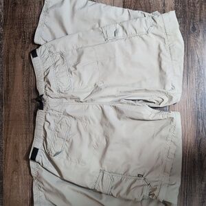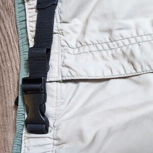 Zip off legs, 7 total pockets, belted, elastic waist band