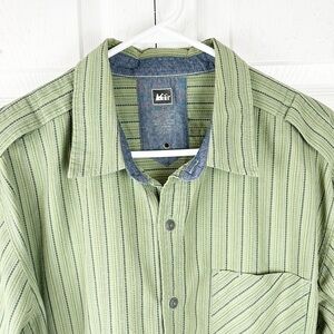REI Men’s Green Stripe Long Sleeve Button Up Cool Plus Shirt
