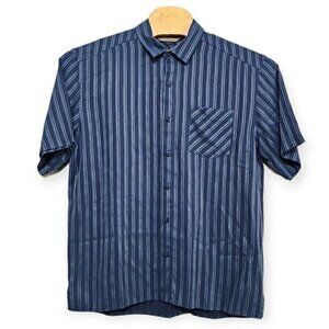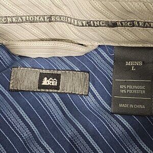 REI Mens Large Blue Striped Short Sleeve Button Up Shirt Outdoors *Soft*