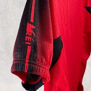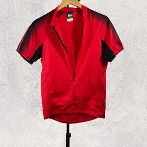 REI Mens Red Black Polyester Short Sleeve Cycling Jersey 3/4 Zip Size L