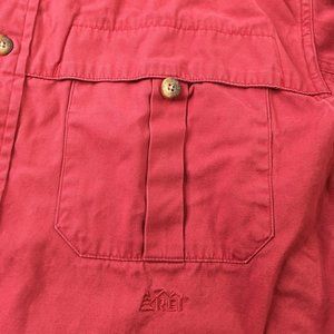 REI Mens Shirt Red Small Collared Long Sleeve Casual Comfort Outdoor Pockets #0961