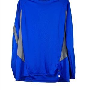REI Mens Sz L Long Sleeve Blue Gray Athletic Shirt Stretchy Base Layer