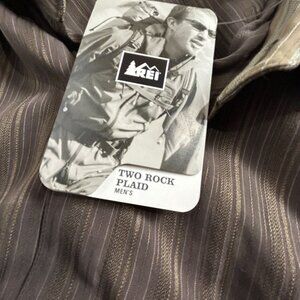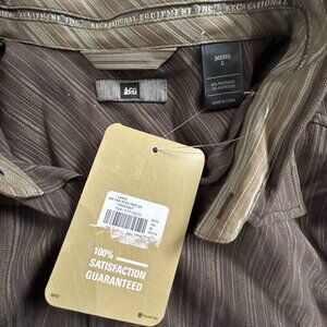 REI Mens Two Rock Striped Short Sleeve Shirt Large Brown Travel Lightweight New