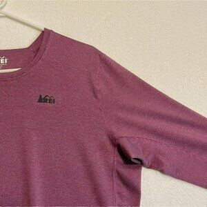 REI Performance Tee Long Sleeve Crew Neck Stretchy Women's XL Pink Gray Stripes