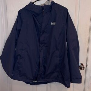 Dark Blue REI Rainer rain coat, bought for a work trip but never used.