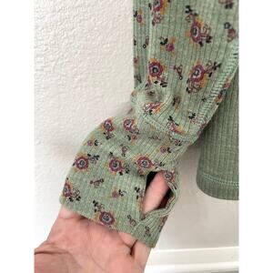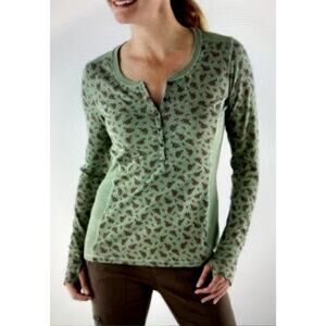 REI Rimrock Floral Henley Light Green Ribbed Long Sleeve Floral Shirt Size Small