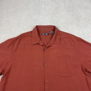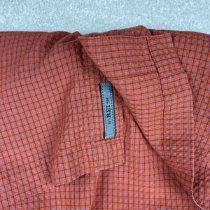 REI Shirt Mens XL Orange Check Button Up Short Sleeve Hiking Outdoor Rayon Blend