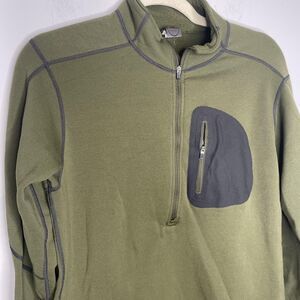 REI Shirt Pullover Men Medium Olive Green Quarter Zip Chest Pocket Hiking Fleece