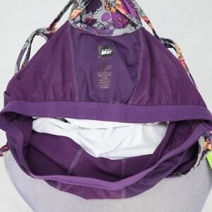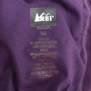 REI Top Women's 14 Sariska Yoga Tunic Gray Purple Stretch Knit Attached Bra New