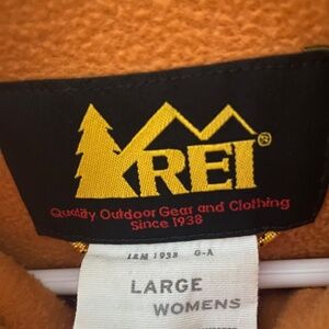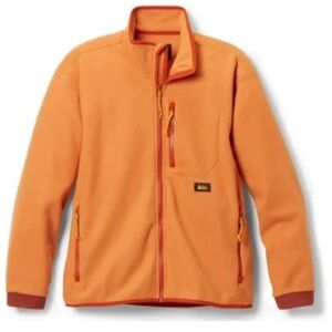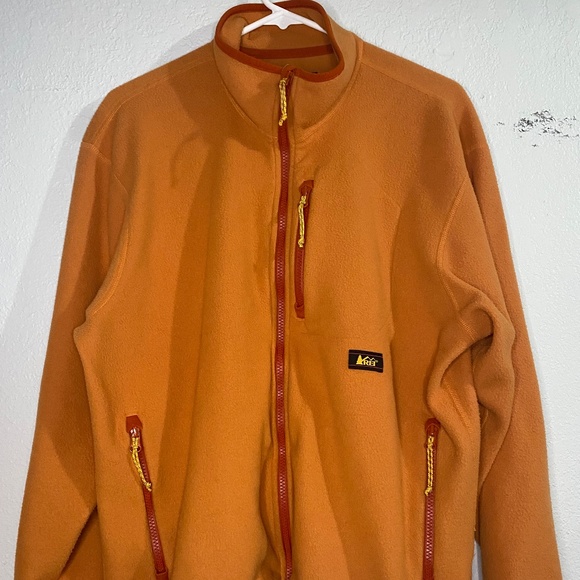 REI fleece jacket. Full zip. Orange with reddish accents. Lightly worn - very good condition. Measurements upon request.