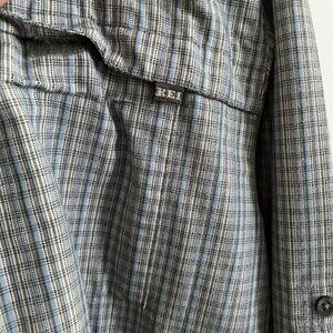REI UPF 50+ Button Up Shirt Green Plaid Roll Tab Sleeves Outdoors Hiking XL