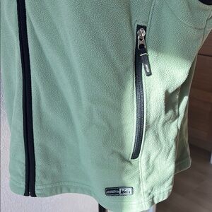 REI Vintage Light Green Light Weight Fleece Pocketed Hiking Turtle Neck Vest