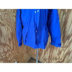 This jacket is in good pre-owned condition. NO holes, tears or stains. Color is hard to photograph, true color is darker than in front photo- please see photo of tags for true color. Please see pics for more condition details.