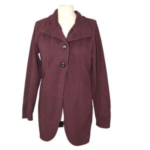 REI Womens Burgundy Button Front Jacket Size L Cozy Outdoor Casual Layering