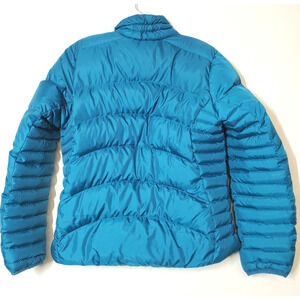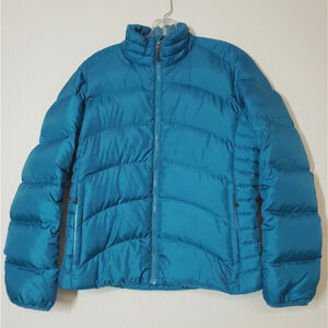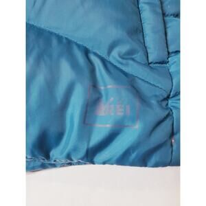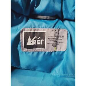 REI Womens Medium DOWN FILL Puffer Jacket Full Zip Blue Pockets Hiking