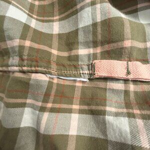 REI Womens Northwoods Button Up Flannel Shirt Small Green Hiking Outdoor Casual