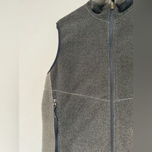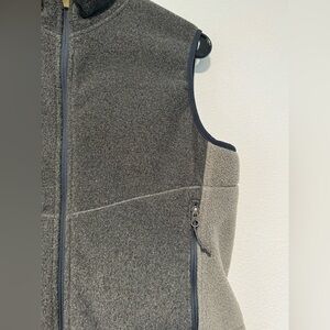Two tone fleece vest, zippered front side pockets, zippered front, grey, sleeveless, polartec, warm, great for layering, the staff REI vest