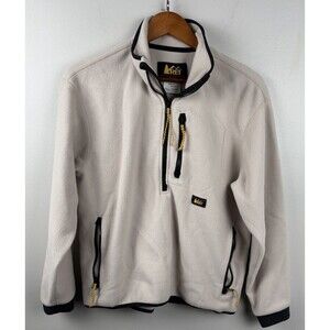 REI Womens Small Beige Fleece 1/4 Zip Jacket Lightweight Polartec 3 Pockets.