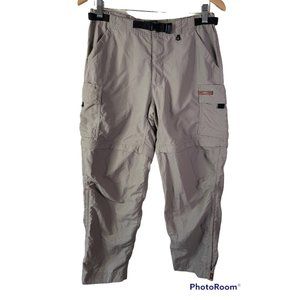 REI Women's UPF50+ hiking/utility pants. Convertible zip. Multi-pockets. Snap waist belt.