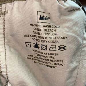 REI gorp dadcore lightweight elastic waist hiking athleisure cargo shorts small army green. Two front slant pockets, two side leg cargo pockets and two back pockets, also includes belt loops for optional belt. Please note there is a slight discoloration on the pocket of one of the legs but it is hardly visible when worn. Please see pictures for condition.