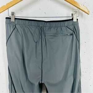 REI Women's size Small Gray Lightweight Elastic Waist Trainer Pants with black trim 3 zipper pockets in good preowned condition.