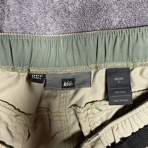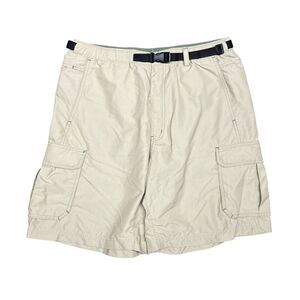 REI Cargo Shorts Mens Large Khaki Nylon Belted Hiking Outdoor Pockets UPF 50+