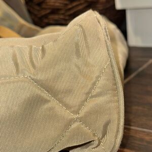 This REI Co-op tote bag is made for adventure! Featuring a sleek gold nylon finish with high-visibility yellow lining, it combines style with practicality. Multiple zippered compartments (including a unique diagonal front zipper with key clip) offer secure and easy-access storage. Dual handles with reinforced stitching ensure comfortable carrying.