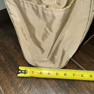 Stylish beige tote bag with a vibrant yellow interior. Perfect for everyday use.