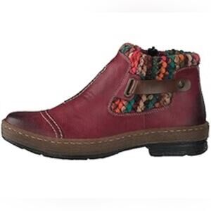 Create the ultimate crafty look in this outdoor must-have by Rieker®. Synthetic upper with a colorful textile shaft. Zipper closure. Soft lambs wool lining. Removable insole. Durable TR outsole. Imported. Measurements: Heel Height: 1 1⁄4 in Weight: 14 oz Shaft: 4 in Platform Height: 1⁄4 in Product measurements were taken using size 39 (US Women's 8), width M. Please note that measurements may vary by size. Weight of footwear is based on a single item, not a pair.