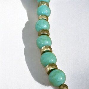- Smooth green chalcedony round beads accented with gold-tone spacers