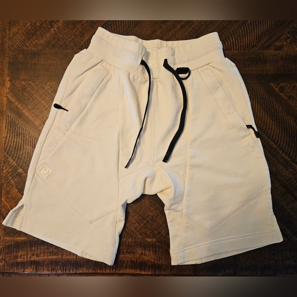 Stylish and comfortable cream shorts featuring black accents. Perfect for casual outings.
