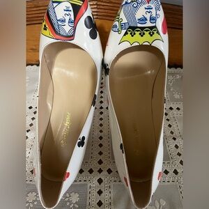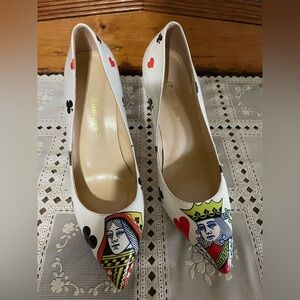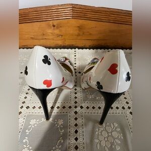 NWOT and no defects. Size 10 high heel pumps stilettos by REINDEE LUSION. White with super cute graphics featuring the king and queen on the front of the pointed toe. Perfect for lots of occasions including Las Vegas, gambling, poker/blackjack parties.