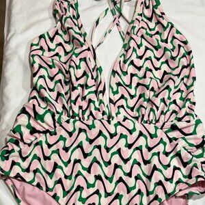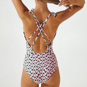 REISS Amelia plunge printed swimsuit Size UK14/US10