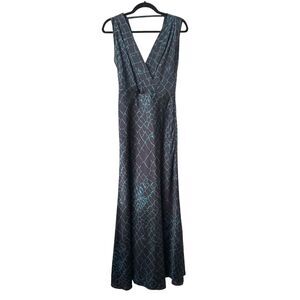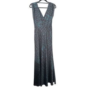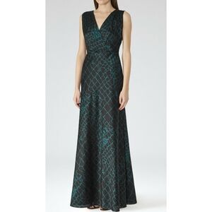 REISS Bebe Patterned Maxi Dress Green/Black Sz4