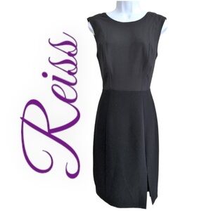 REISS Beech Black V-Back Sleeveless Sheath Dress, Size 10.