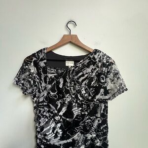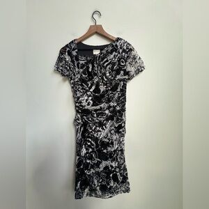 REISS Bodycon Romisa Draped Lace dress Asymmetrical Whimsical Y2K abstract print