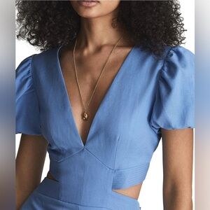 Cadet blue JENNAH puff sleeve waist cutout maxi dress from REISS, size 12.