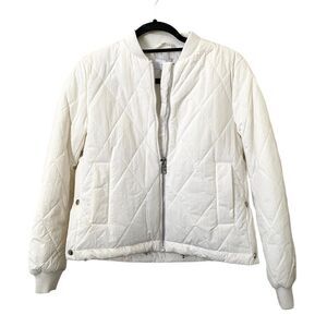 True white quilted padded bomber. Zippered front closure. Side snap button details. Adjustable waistband. Polyamide, polyester blend. New with tags! Size 2