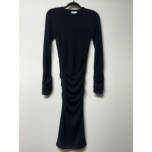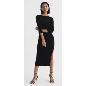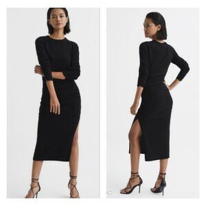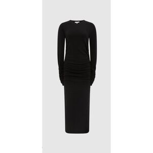 REISS Charley Ruched Midi Dress, Wool/Cashmere Blend, Black, Sz XS