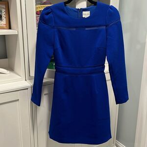 REISS Cobalt Blue "Gigi" Mini Dress, Mesh Paneling, Long Sleeve, Size 0