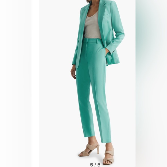 REISS Ember Slim Leg High Rise Smart Formal Pants in Teal, US size 2 US