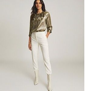 A guaranteed winner for the party season and beyond, the Emmie shirt in gold is an eye-catching piece for the new season. Crafted from a fluid, silk-blend for effortless wear, the ruffle detailing elevates it among your classic after-hours pieces. Pair it with smart trousers and heels for the perfect look.