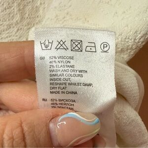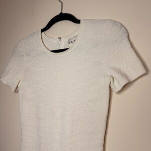 REISS Felix Textured White Office Bodycon Short Sleeve Stretchy Knit Midi Dress