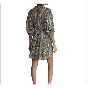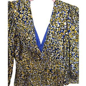 REISS Floral Mini A Line Dress With Daisy Puff Sleeve In Yellow & Blue Size 2
